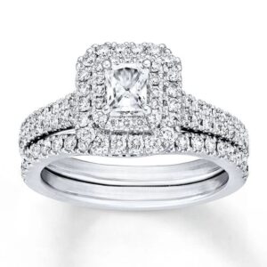 Multi-Diamond Drop Necklace 2 ct tw Round & Marquise-cut 14K White Gold 18″