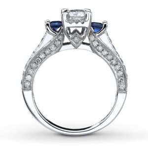 Blue Sapphire, Garnet and Diamond Tiara Ring in Sterling Silver and 10K Gold